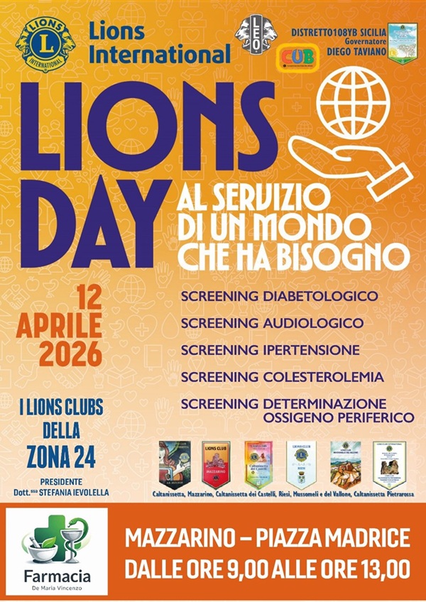Domenica 12 aprile 2026, giorno del “Lions Day” 2026″ in tutto il mondo, su input della Presidente della Zona 24 del Distretto Lions 108Yb Sicilia, Stefania Ievolella, si è svolto a Mazzarino il Lions Day della Zona, unificato per tutti e sei i Club che la compongono: Lions Club Caltanissetta, Lions Club Mazzarino, Lions Club Caltanissetta dei Castelli, Lions Club Riesi, Lions Club Mussomeli e del Vallone, Lions Club Caltanissetta Pietrarossa.