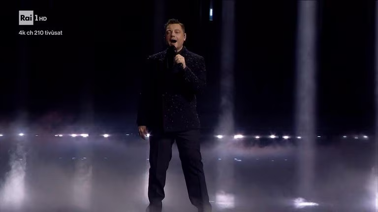 A presentarlo è Carlo Conti, che rievoca l’esordio televisivo di Ferro: “Era ospite nel 2001 a Domenica In, lo presentai io e cantò per la prima volta Xdono”. Da lì prende forma una performance costruita come un viaggio nella sua carriera. Ferro apre con “Ti scatterò una foto”, poi accende il pubblico con un medley che attraversa “La differenza fra me e te” e “Lo stadio”, fino ad arrivare proprio a “Xdono”, accolta da un coro compatto della platea.