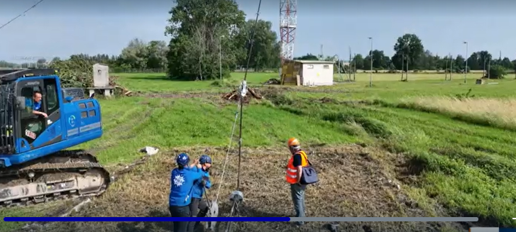 Nella foto l’abbattimento di due antenne di Siziano, nel pavese, dopo quasi 100 anni di attività mediante collasso controllato, che prevede l’utilizzo di un argano e tiranti per causare la caduta controllata della struttura.