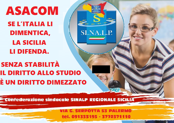 La Segreteria Regionale SINALP Sicilia – Tel. 091333195 – 3356608838 –Via G. Serpotta n. 53, Palermo