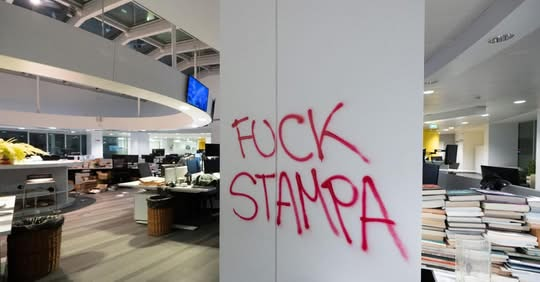 “Un centinaio di violenti, staccati dal corteo a sostegno della Palestina libera, ha fatto irruzione nella sede del quotidiano imbrattando pareti e rovesciando documenti e materiale sulle scrivanie”, ha scritto il quotidiano torinese.