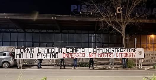 L’ Organizzazione politica di destra, che, come fatto anche in altre occasioni, ha esposto un lungo striscione in via Rochester davanti la piscina comunale chiusa dal 30 giugno del 2019 e sulla loro pagina su Facebook si legge: