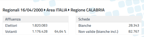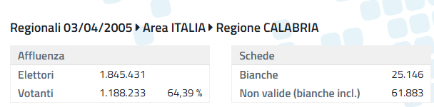 Mai come in questa tornata elettorale la Calabria rischia di diventare la regione nella quale si voterà di meno. Abbiamo già spiegato le profonde motivazioni che stanno alla base di una sfiducia sempre più crescente nella politica corrotta fino al midollo e in questa sede passiamo al raffronto con i precedenti partendo dal 2000, anno in cui per la prima volta il presidente della Regione è stato eletto direttamente dai cittadini.