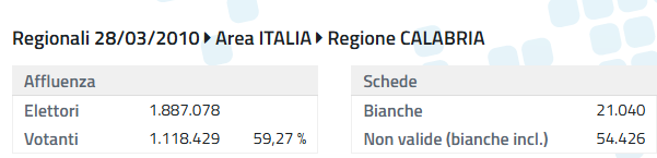 Da quegli anni, con la consapevolezza che l’inchiesta “Why Not” era stata fermata solo grazie al provvidenziale intervento del procuratore di Catanzaro intrallazzato addirittura con i suoi familiari con l’indagato principale dell’indagine e grazie all’intervento diretto dell’allora ministro “barzelletta” della Giustizia Clemente Mastella, le percentuali di astensione si sono sensibilmente rafforzate. Pensate che nel 2010, anno in cui Peppe Scopelliti sconfigge un Loiero azzoppato e impresentabile, la percentuale dei votanti scende di ben 5 punti, passando al 59,27%, restando comunque ancora decente e dignitosa. Ma quella consiliatura non arriverà neanche alla fine perché stavolta nessun magistrato corrotto e nessun ministro colluso potrà fermare la tempesta giudiziaria che si abbatte su Scopelliti, arrestato e messo fuori gioco con un anno di anticipo.