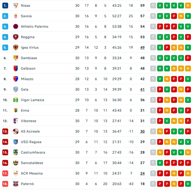 – Savoia (57 punti): Resta l’antagonista principale. Grazie al successo casalingo per 2-0 contro il Messina, i campani rimangono incollati alla scia della Nissa, distanti solo due lunghezze.