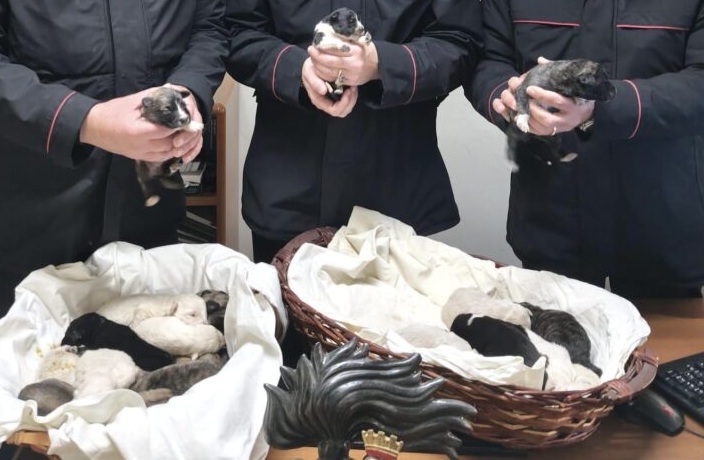 Una volta risaliti all’intestatario dell’auto e all’indirizzo dell’abitazione, il tempestivo intervento dei Carabinieri ha consentito di trovare e prendere temporaneamente in custodia i 18 cuccioli, in buono stato di salute, ma bisognosi di cure e assistenza, sono stati affidati a un’associazione di volontariato.