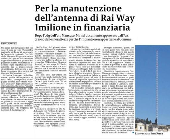 Per rispondere alle tante segnalazioni e per i forti di cuore è doveroso precisare che tutto ciò fu poi smentito, l’on.Mancuso, chiamato dal compianto Lino Lacagnina, disse testualmente “le inesattezze riportate nel documento sonso state determinate dalle frettolose acquisizioni delle notizie da inserire nel documento per spiegare all’ARS l’importanza che l’antenna riveste per Caltanissetta”. L’on. Mancuso dice “Ammetto che alcune notizie riportate nella premessa del documento non sono state adeguatamente verificate compresa la richiesta del vincolo del bene che l’Assessorato regionale ai Beni culturali ha ribadito lo scorso 13 aprile. Frutto tutto ciò di un frettoloso assemblaggio delle notizie storiche, ma al di là di ciò non deve sfuggire a nessuno l’importanza dell’approvazione del documento perchè grazie ad esso il Governo regionale (questo c7so e il futuro) resta impegnato a trovare le risorse occorrenti per mettere in sicurezza l’antenna”