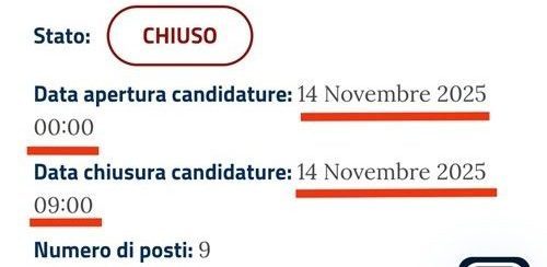 Qualora legittimo, la scelta di aprire un bando pubblico a mezzanotte e di chiuderlo appena nove ore dopo solleva comunque seri interrogativi sul piano dell’opportunità amministrativa e della tutela dell’accesso equo ai concorsi pubblici. Una tempistica così ridotta rischia di limitare di fatto la partecipazione, escludendo molti potenziali candidati che non hanno avuto un tempo ragionevole per venire a conoscenza del bando e presentare la domanda.