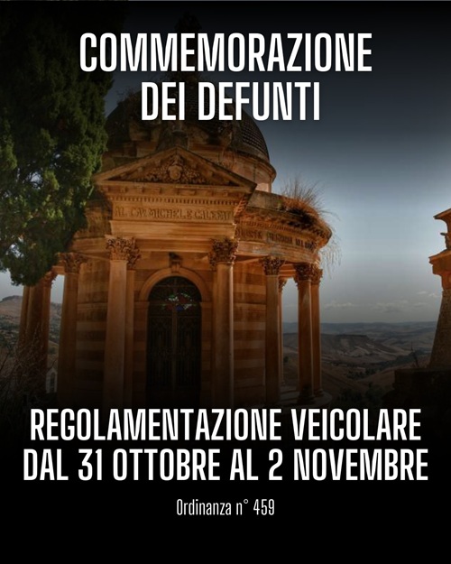 In occasione della ricorrenza della commemorazione dei defunti, è consuetudine recarsi al cimitero per fare visita ai propri cari, da parte di una moltitudine di persone, considerato che nella zona Angeli si prevede un intenso traffico veicolare ed un notevole afflusso di persone, il Comune ha emesso una specifica ordinanza, nel lik sotto