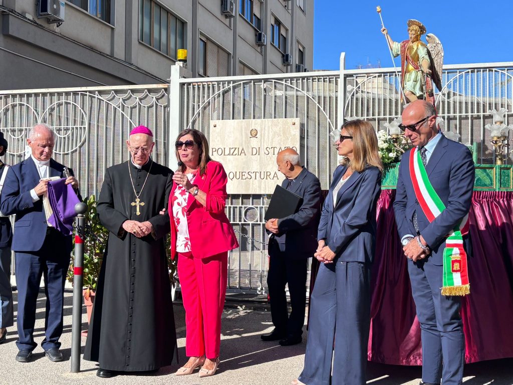 Questa mattina, in occasione della festività di San Michele Arcangelo, Santo Patrono della Polizia di Stato e della città di Caltanissetta, prima della celebrazione della Messa Pontificale in Cattedrale alle 10.30, è stata deposta una corona d’alloro alla stele dedicata ai caduti della Polizia di Stato da parte del Questore della Provincia di Caltanissetta Pinuccia Albertina Agnello, alla presenza del Prefetto Licia Messina, del Vescovo della Diocesi di Caltanissetta Mons. Mario Russotto, del Sindaco Walter Tesauro e del cappellano della Polizia di Stato.