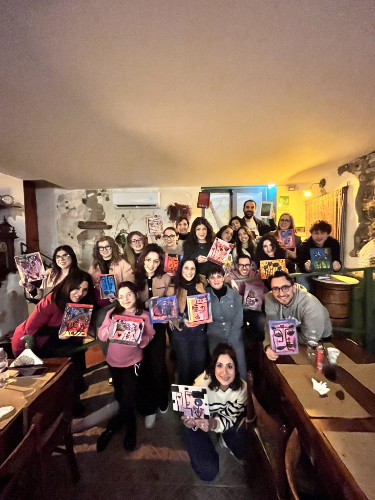 I partecipanti hanno potuto esprimere la loro parte più intima e creativa, accompagnati da un calice di vino e buon cibo, in un’atmosfera di convivialità e ispirazione.