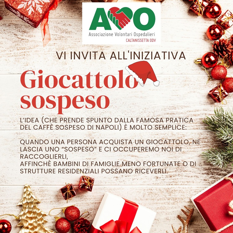 Si è conclusa con un bilancio straordinario l’iniziativa del “Giocattolo Sospeso”, promossa dall’AVO (Associazione Volontari Ospedalieri) di Caltanissetta. Grazie alla generosità dei cittadini, la magia delle festività ha raggiunto decine di bambini, unendo i territori di Caltanissetta e San Cataldo in un unico grande abbraccio solidale.