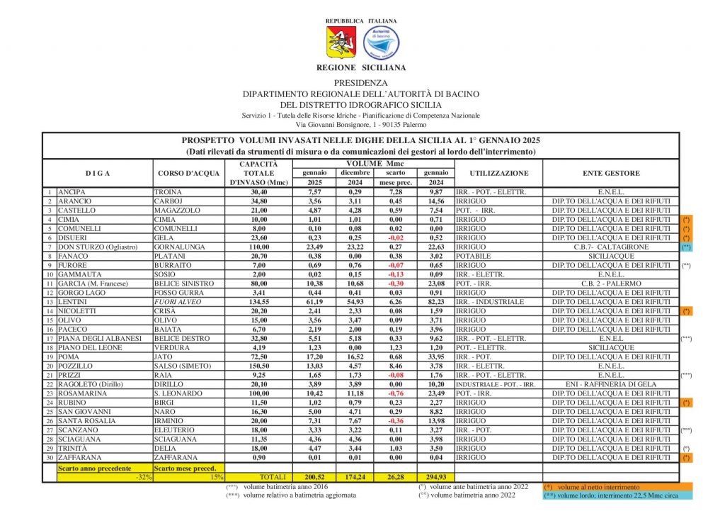 Rilevazione gennaio 2025 a cura del Dipartimento regionale dell’Autorità di Bacino del Distretto Idrografico Sicilia.