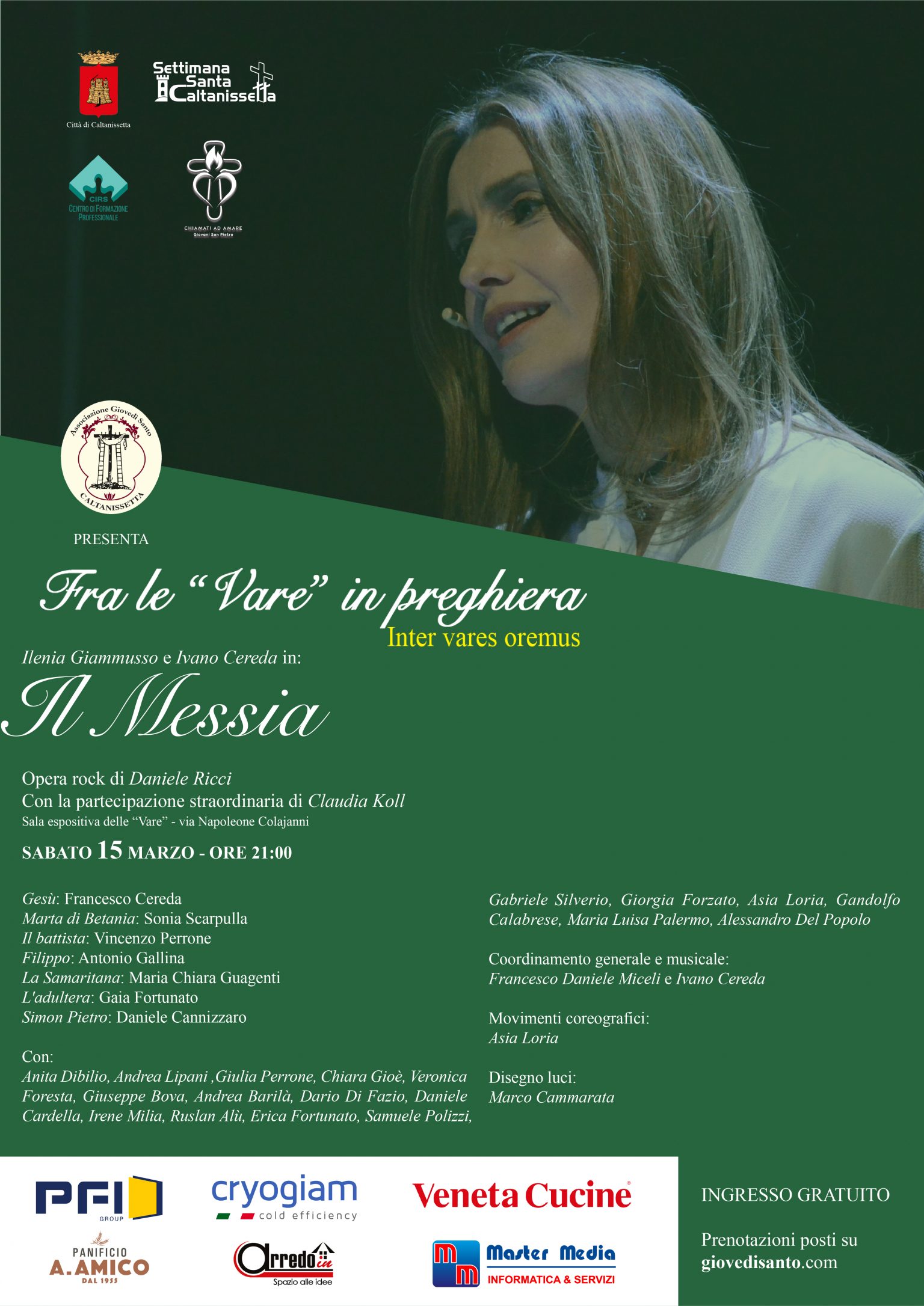 Domani, 15 marzo, il Festival proporrà un evento di grande rilievo artistico e culturale. Alle ore 21:00, andrà in scena lo spettacolo rock di Daniele Ricci “Il Messia”, con la partecipazione straordinaria della nota attrice Claudia Colacione (in arte Claudia Koll). Sul palco, un cast giovane, composto dal gruppo giovani Parrocchia San Pietro, affiancati dagli attori locali Ilenia Giammusso e Ivano Cereda.