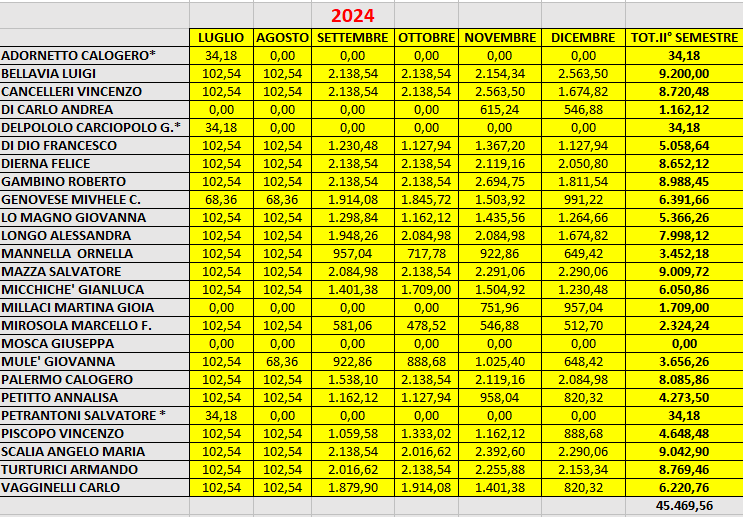 Nel secondo semestre del 2024, il totale per 23 consiglieri, non c’era la figura del vice presidente, ammontava a 45.469,56 €, nel 2025, la somma di soli 5 consiglieri ha già raggiunto quota 76.295,70