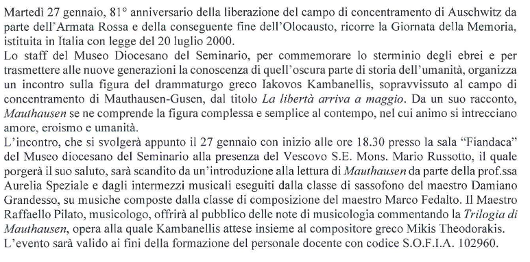 Caltanissetta 401 > News > Caltanissetta > Caltanissetta: Giornata della Memoria al Museo Diocesano