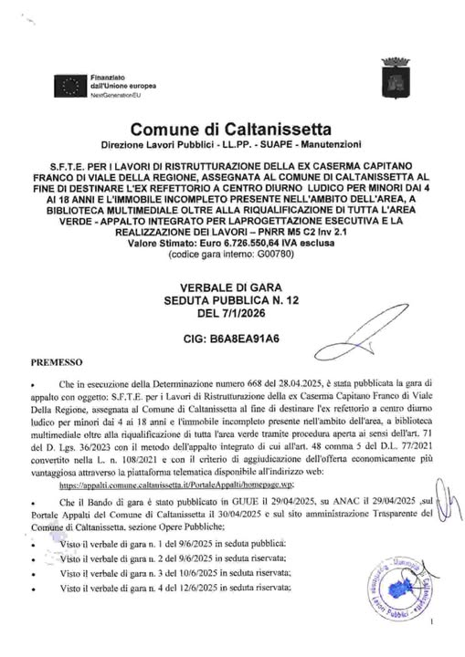 “Da un quotidiano locale on line, si apprende che è stato approvato e pubblicato il verbale di gara sulla ex Capitano Franco che aggiudica i lavori in funzione della sentenza del TAR, ovviamente l’ufficio si riserva di sottoscrivere il contratto solo nel caso in cui il cronoprogramma potrà essere rispettato.