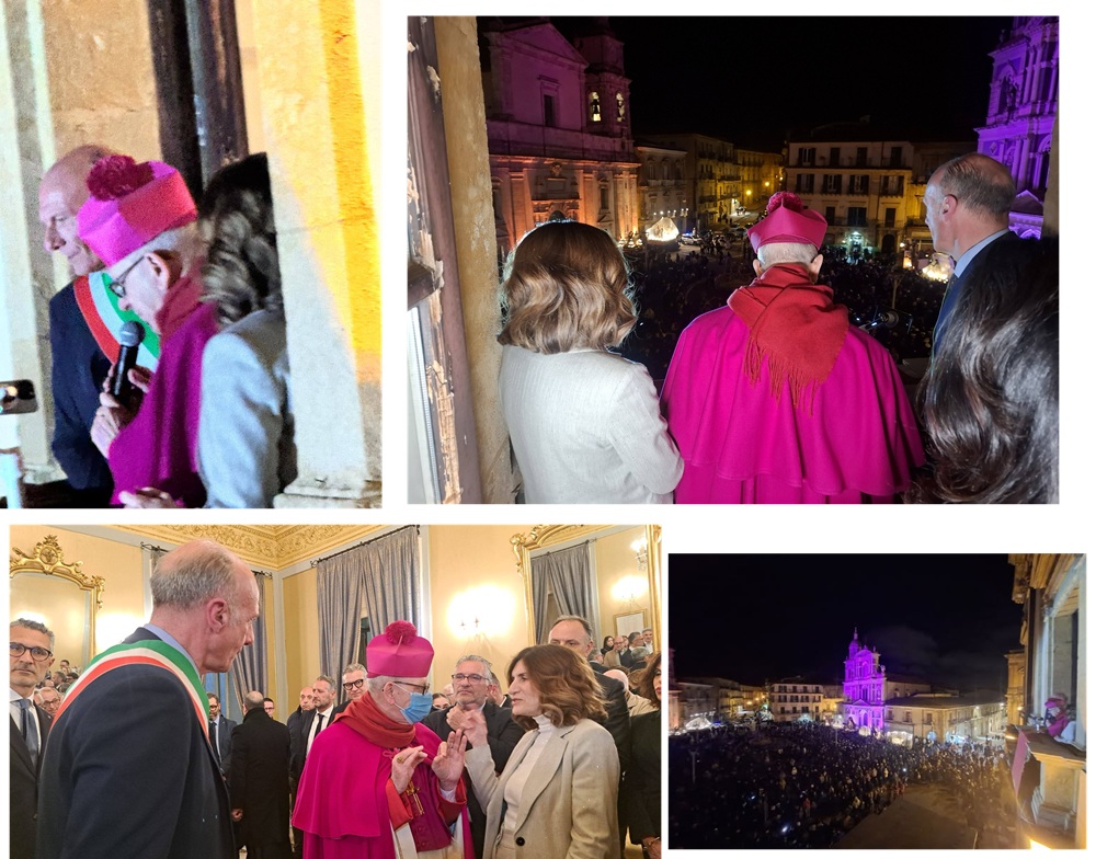 Il Vescovo di Caltanissetta, S.E. Mons. MarioRussotto, dal balcone di Palazzo del Carmine, ha dato la benedizione ai presenti e avviato la processione delle Vare.