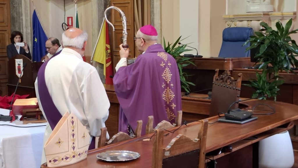 Questa mattina il Vescovo della Diocesi di Caltanissetta, Mons. Mario Russotto, ha celebrato una funzione religiosa nell’aula consiliare di Palazzo del Carmine dedicata ai dipendenti del Comune di Caltanissetta, al segretario generale Cinzia Chirieleison e degli organi politici.