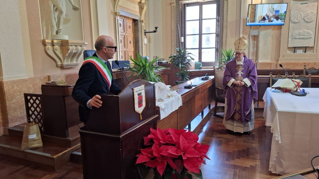 Al termine della funzione il sindaco Walter Tesauro ha ringraziato il Vescovo per le parole di incoraggiamento e supporto e lodato tutti i dipendenti comunali che, con impegno serio e il sorriso, sono sempre pronti ad agire per il bene della città.