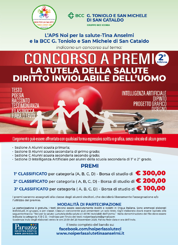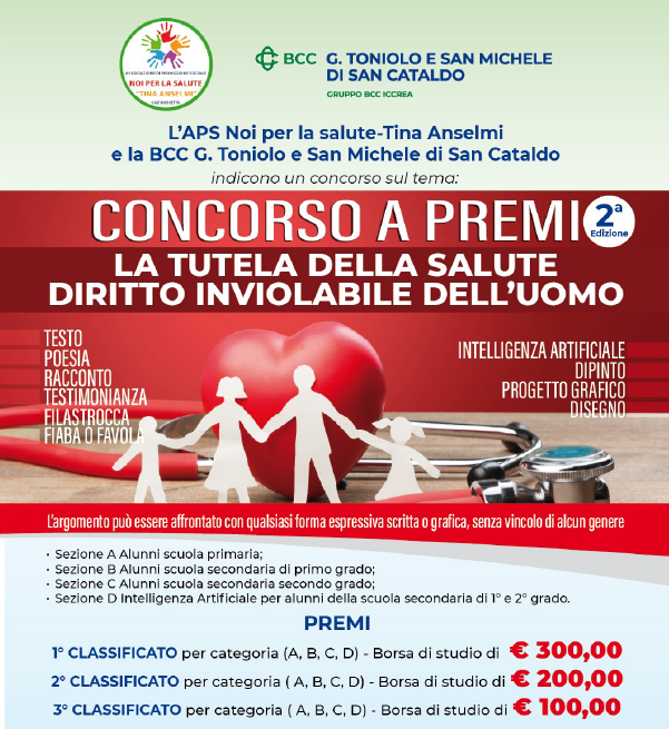 L’Associazione di Promozione Sociale: “Noi per la salute” Tina Anselmi e la BCC “G. Toniolo e S. Michele” di San Cataldo indicono il 2° Concorso sul tema: