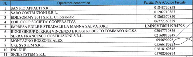 Con nota prot . n. 151442 del 19/12/2025 sono state invitate tramite il Portale Appalti a presentare preventivo – offerta per i Lavori di cui all’oggetto le seguenti n. 11 ditte, fissando la data di scadenza della presentazione del preventivo il 24/12/2025 ore 10:00.