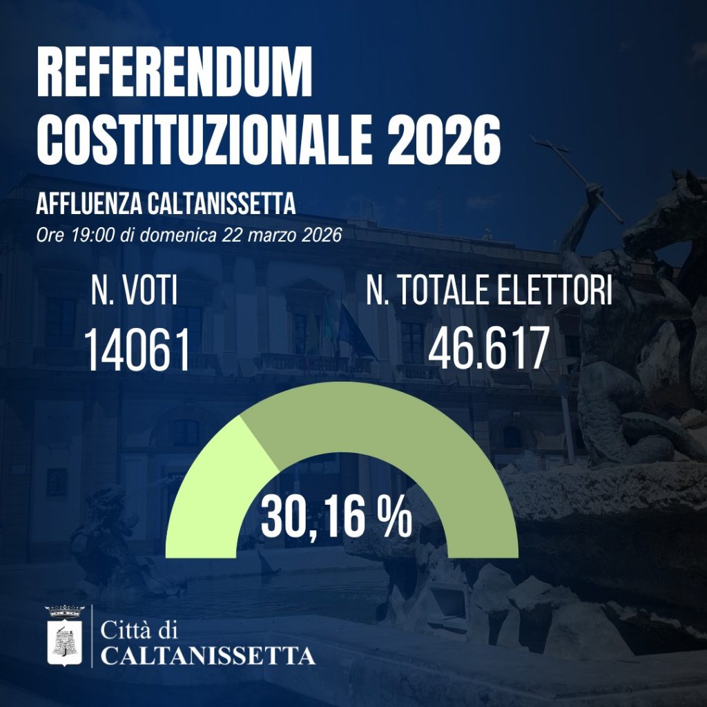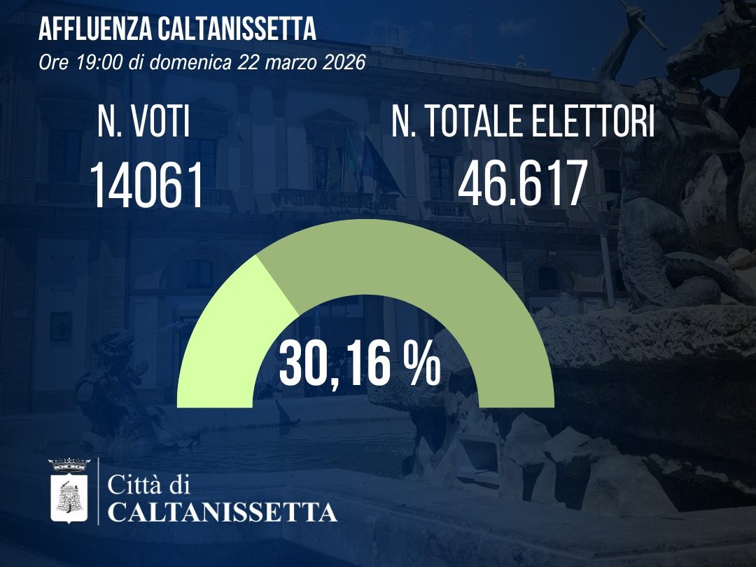 Alle ore 19:00 di domenica 22 marzo 2026 hanno votato a Caltanissetta il 30,16% degli aventi diritto.