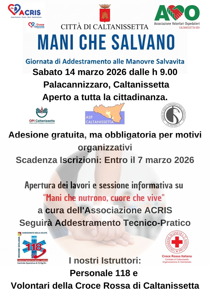 Un invito che sa di sfida, ma soprattutto di responsabilità. Sabato 14 marzo 2026, dalle ore 9:00, il Palacannizzaro aprirà le porte per l’evento “Mani che Salvano”, una giornata intensiva di addestramento alle manovre salvavita aperta a tutta la cittadinanza.