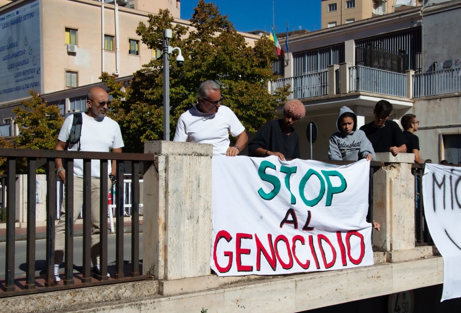 Questa mattina, dalle ore 10.00 alle ore 12,00, è stato esposto lo striscione contenente il messaggio “Stop al genocidio” sul cavalcavia della Verga, realizzato da un gruppo di studenti liceali come atto simbolico contro la guerra e ogni forma di violenza.