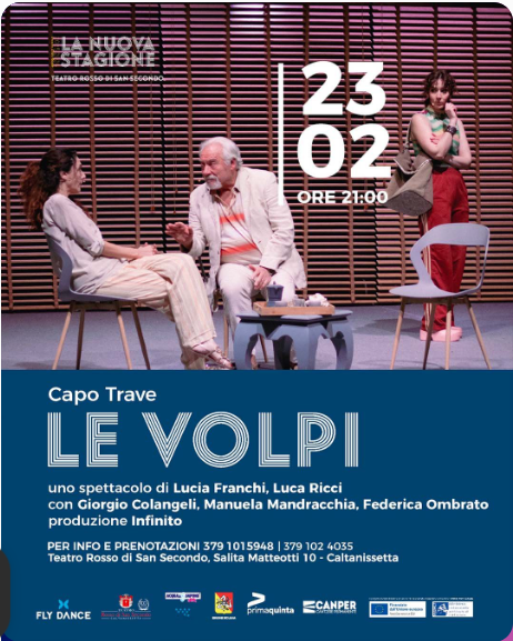 Il testo de LE VOLPI è giunto secondo al Premio UBU 2024, nella categoria “Miglior Testo Italiano / Scrittura Drammaturgica” DRAMMATURGIA E REGIA Lucia Franchi e Luca Ricci Con Giorgio Colangeli, Manuela Mandracchia, Federica Ombrato Lunedì 23 Febbraio 2026 h 21 Teatro Rosso di San Secondo Caltanissetta