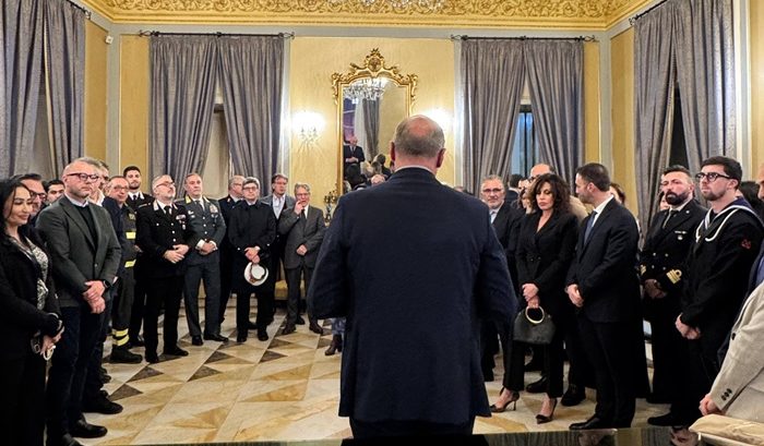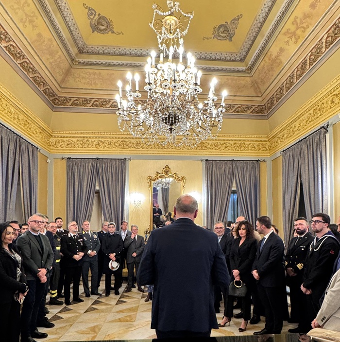 il Sindaco Walter Tesauro ha accolto nella Sala Gialla di Palazzo del Carmine le autoritΓ  civili e militari per il tradizionale scambio di auguri.