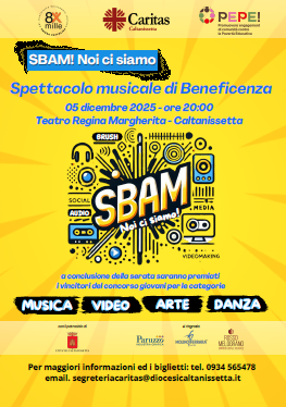 CONCORSO GIOVANI “SBAM! Noi ci siamo” 2ª edizione, promosso da Caritas Caltanissetta. Locandina