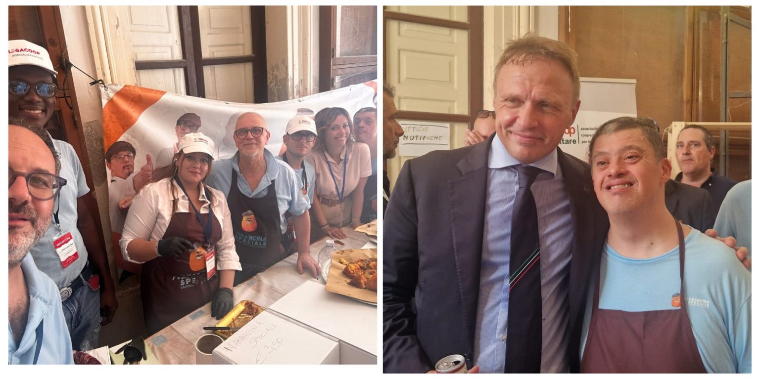 Ospiti dello stand allestito da Legacoop Sicilia e Legacoop Agroalimentare, i ragazzi del progetto che mira all’inclusione grazie all’arancina, uno dei cibi più amati della cucina siciliana, hanno anche ricevuto la visita del ministro dell’Agricoltura Francesco Lollobrigida.