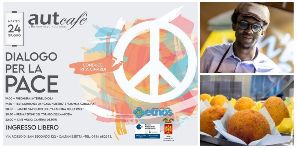A seguire sarà dato spazio alle testimonianze di ragazzi e operatori di “Casa Nostra” e “Mamma Carolina”, il lancio simbolico dell’Arancina della Pace, la premiazione del torneo dell’amicizia e musica dal vivo con il gruppo “Cantina Dejavu”.