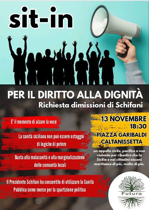 “Futura – Costruiamo insieme la Città”, ha organizzato un sit-in “PER IL DIRITTO ALLA DIGNITÀ, chiedendo le dimissioni di Schifani.