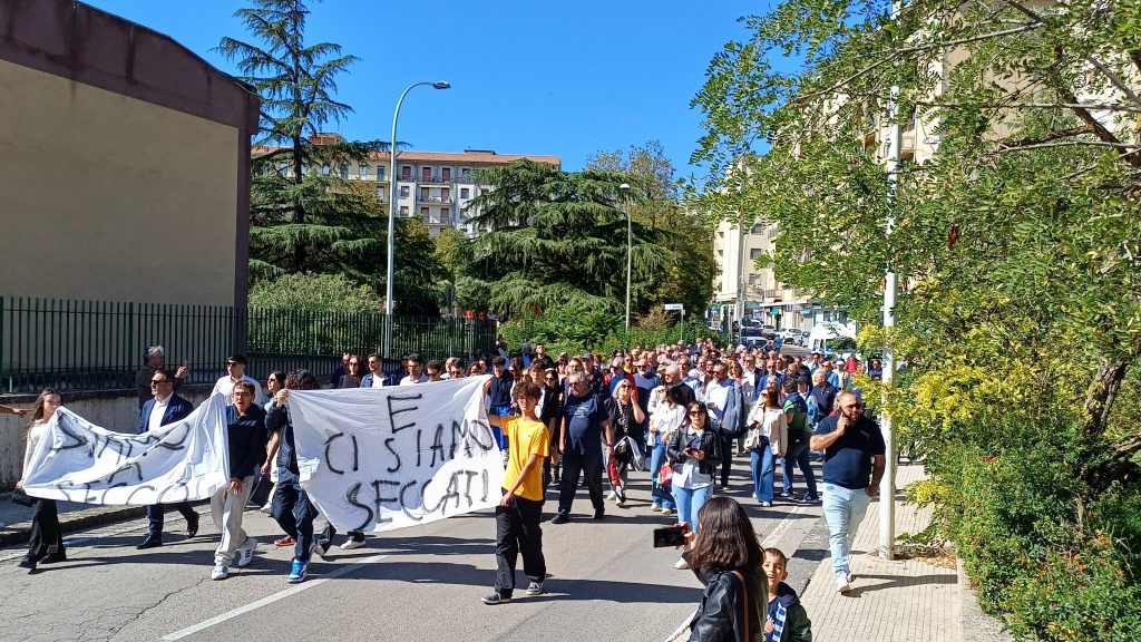 Il corteo si è poi fermato davanti il Genio Civile e ha preso il microfono il Sindaco Tesauro, ribadendo che già sta facendo tutto il possibile per fare in modo che l’acqua arrivi con regolarità e magari più spesso, nelle case dei suoi concittadini. Aggiunge, concludendo, che andrà anche a Roma, se necessario.