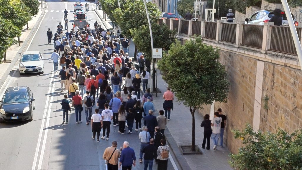 Partito da Piazzetta della Repubblica, presenti i sindaci Tesauro e Comparato, qualche assessore ed alcuni consiglieri comunali, stavolta anche qualcuno di maggioranza.