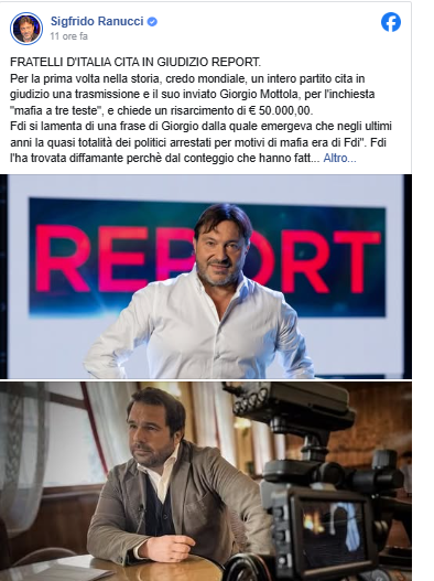 Dopo la circolare bavaglio arriva anche la denuncia bavaglio. Per la prima volta, un partito cita un programma televisivo in giudizio, chiedendo 50mila alla trasmissione di Rai 3, Report, e al giornalista Giorgio Mottola. La citazione in giudizio arriva da Fratelli d’Italia, partito della presidente del Consiglio Giorgia Meloni.