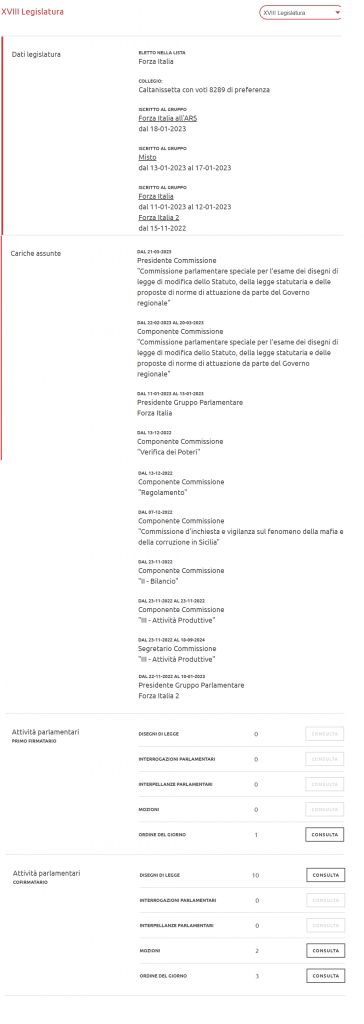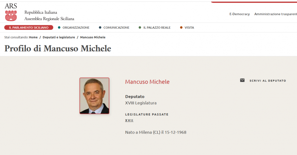 Michele Mancuso anche lui è entrato all’ARS il 15/11/2022 iscrivendosi al gruppo Forza Italia 2, poi l’11/01/202 passa al gruppo Forza Italia e dopo un solo giorno di permanenza, il 13/01/2023 passa al gruppo misto per poi tornare, dopo 5 giorni, al gruppo di Forza Italia.