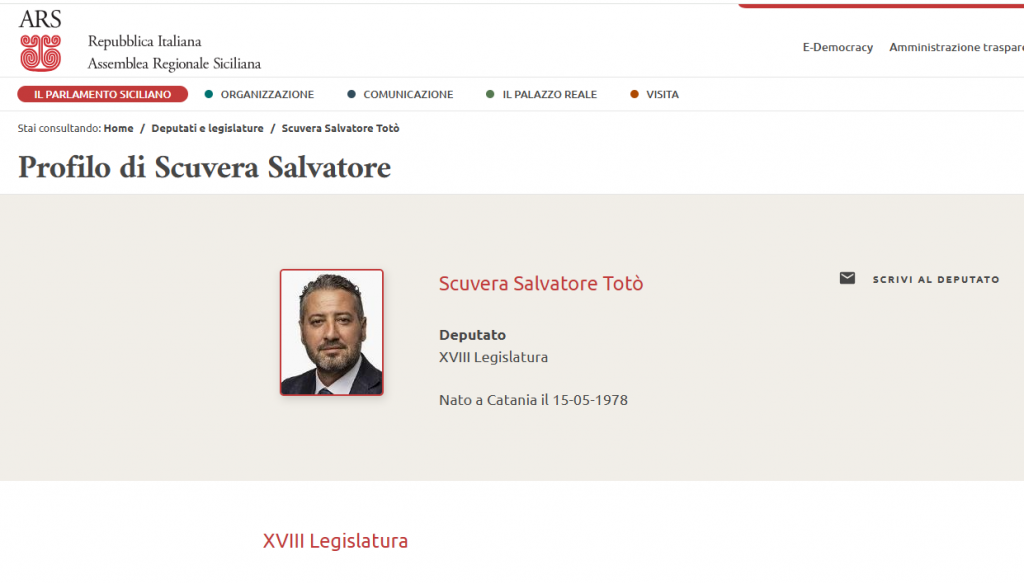 Salvatore Scuvera entra all’ARS il 31/07/2024 al posto di Giuseppe Catania e si iscrive direttamente al gruppo di Fratelli d’Italia.