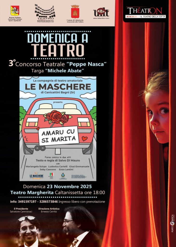 Il prossimo appuntamento della rassegna è domenica 23 novembre, alle ore 18:00, quando salirà sul palco la compagnia Le Maschere di Canicattini Bagni (SR) con la brillante farsa comica “Amaru cu si marita”, scritta e diretta da Salvatore Di Mauro.