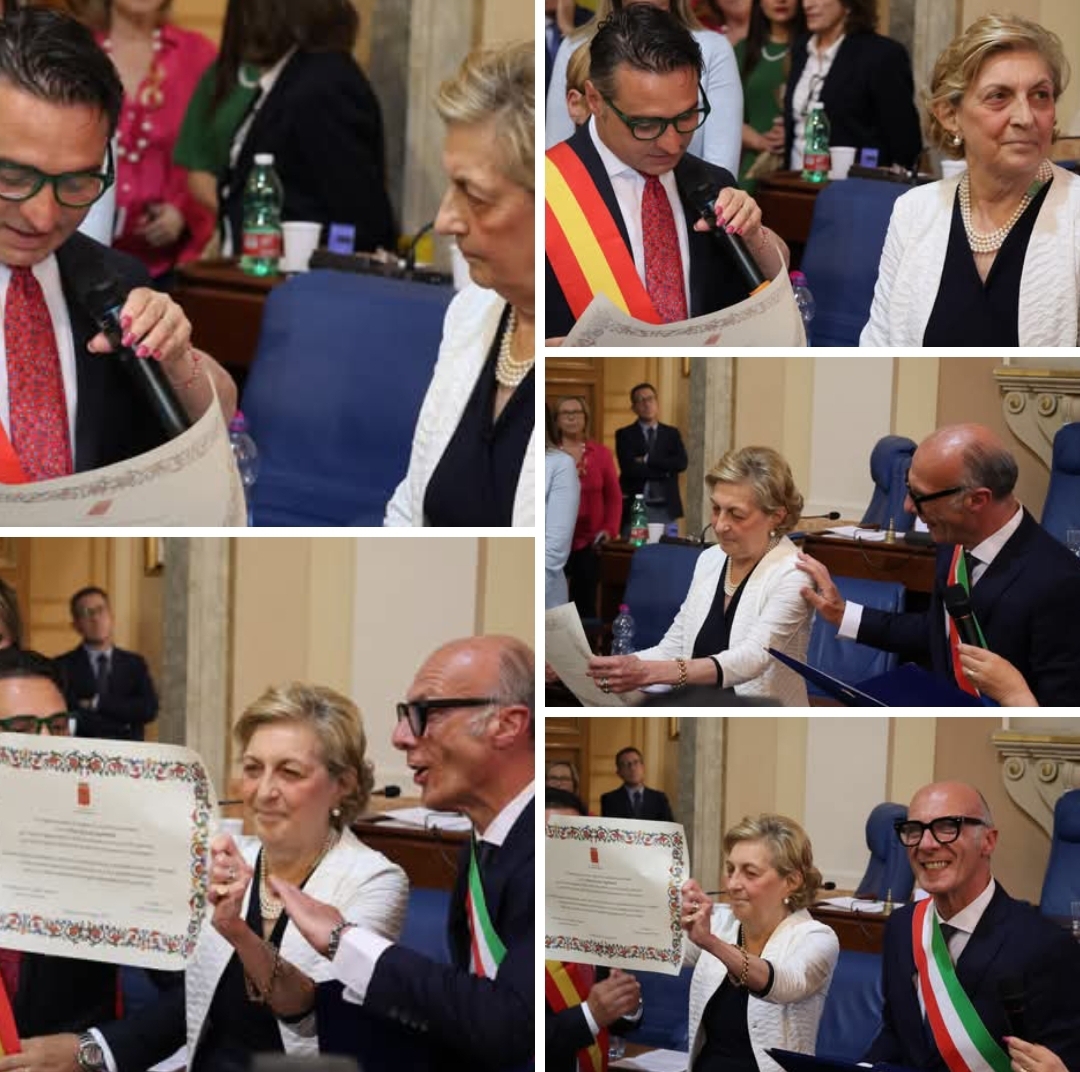 ร questo il testo che si legge sulla pergamena che il Sindaco Walter Tesauro e il Presidente del Consiglio Gianluca Bruzzaniti hanno donato alla Dott.ssa Maria Grazia Vagliasindi nel corso di una cerimonia piena di emozioni.