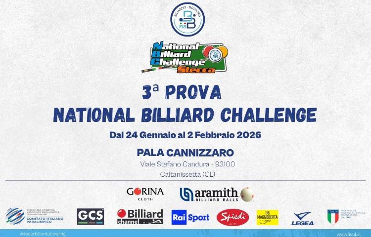 I campioni del biliardo italiano arrivano a Caltanissetta, che dal 24 gennaio al 2 febbraio 2026 ospiterà la “3ª Prova National Billiard Channel”, prestigiosa competizione della specialità Stecca (5 birilli).