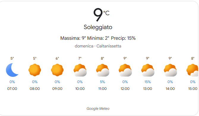 Ecco le previsioni dettagliate per domani, Domenica 11 gennaio 2026, a Caltanissetta: