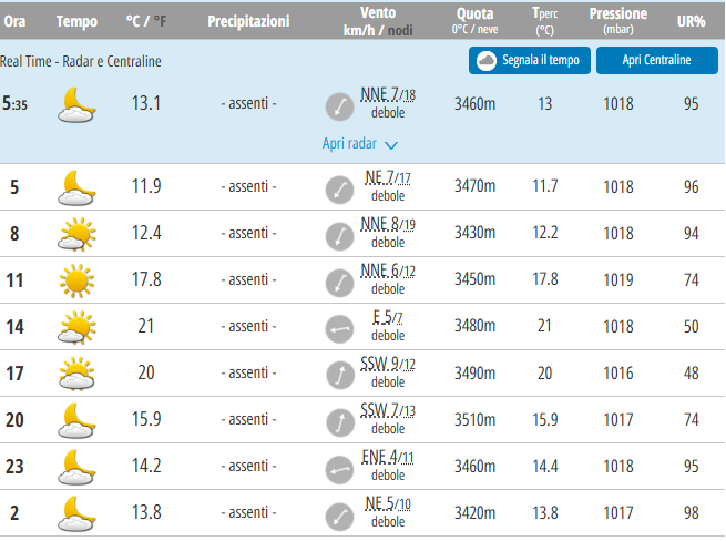 Entrando nel dettaglio, avremo ampio soleggiamento al mattino, nubi sparse durante il resto della giornata. Durante la giornata di oggi la temperatura massima verrà registrata alle ore 15 e sarà di 21°C, la minima di 11°C alle ore 7.
