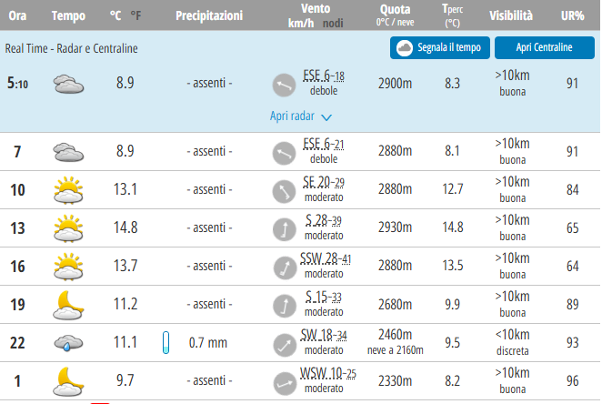 I venti saranno al mattino moderati provenienti da Sud-Est con intensità compresa tra 20 e 29km/h, per il resto della giornata moderati provenienti da Sud-Sud-Ovest con intensità tra 28km/h e 41km/h.
