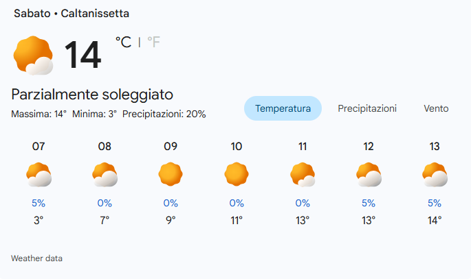 Il Meteo a Caltanissetta Sabato 21 Marzo 2026