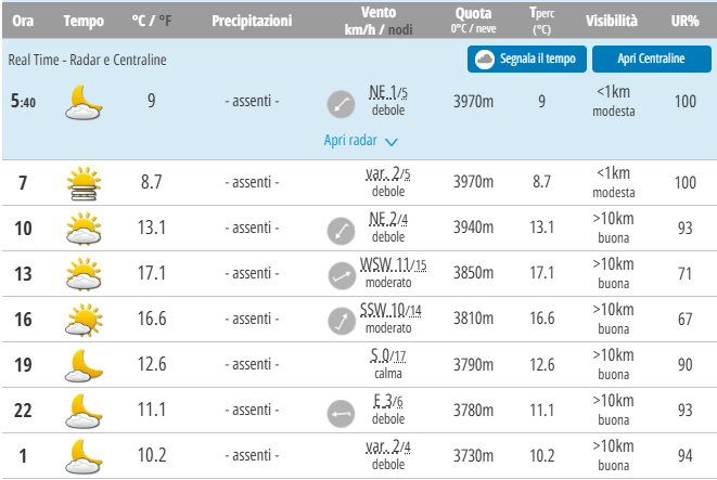 La visibilità più ridotta si avrà alle ore 1 e sarà di 140m.