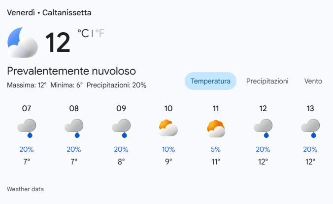 | Temperatura Massima | 12°C |