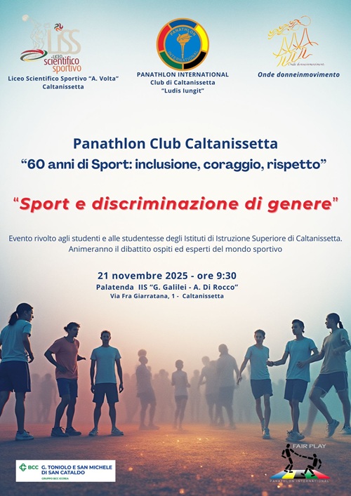 In occasione del 60° anniversario dalla sua fondazione, il Panathlon Club di Caltanissetta, presieduto da Francesco Contino, organizza (in collaborazione con il Liceo Scientifico Sportivo “A.Volta” e l’Associazione Onde donneinmovimento) un evento celebrativo dal forte valore sociale e culturale. L’appuntamento è programmato per venerdì 21 novembre 2025, alle ore 9:30 presso il Palatenda dell’IIS “G. Galilei – A. Di Rocco” di Caltanissetta, grazie alla disponibilità e alla cortese collaborazione del Dirigente Scolastico.